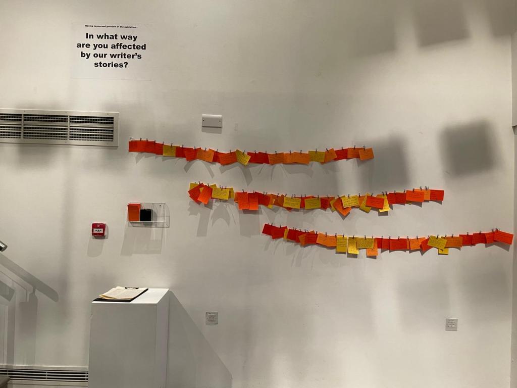 The placement of the essays around the gallery as the centrefold of the exhibition is an ode to the beauty of writing. But the highlight of the exhibition is the map which provides a brief history of events in Palestine from the 1800s to present day, accompanied by quotes from essays by WANN writers. While many people are determined to take sides in the Israel-Palestine conflict based on personal allegiances, the timeline presents the history of Palestine in a very clear and moving way, which is easily accessible for the reader. Each event is brought to life by moving excerpts from a handful of various personal essays, of which there are a total of over 1,300 written by 350 writers since WANN began in 2014.